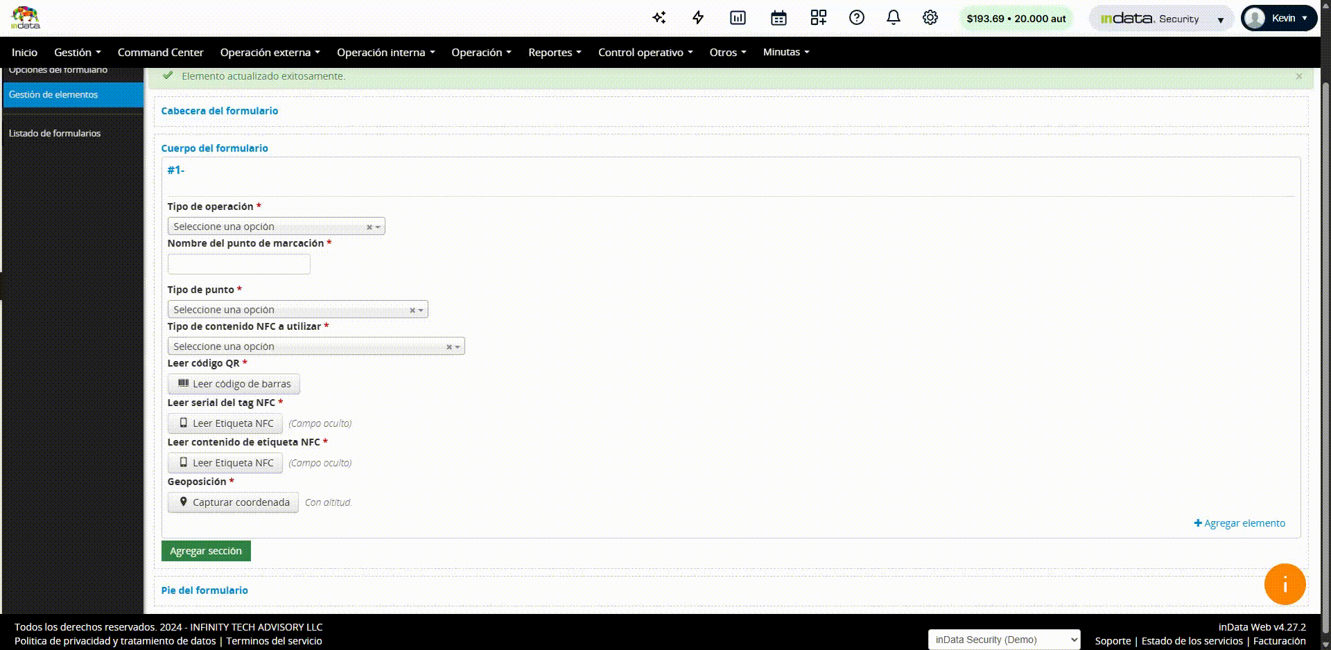 Para crear el formulario de configuración de QR/NFC realice los siguientes pasos